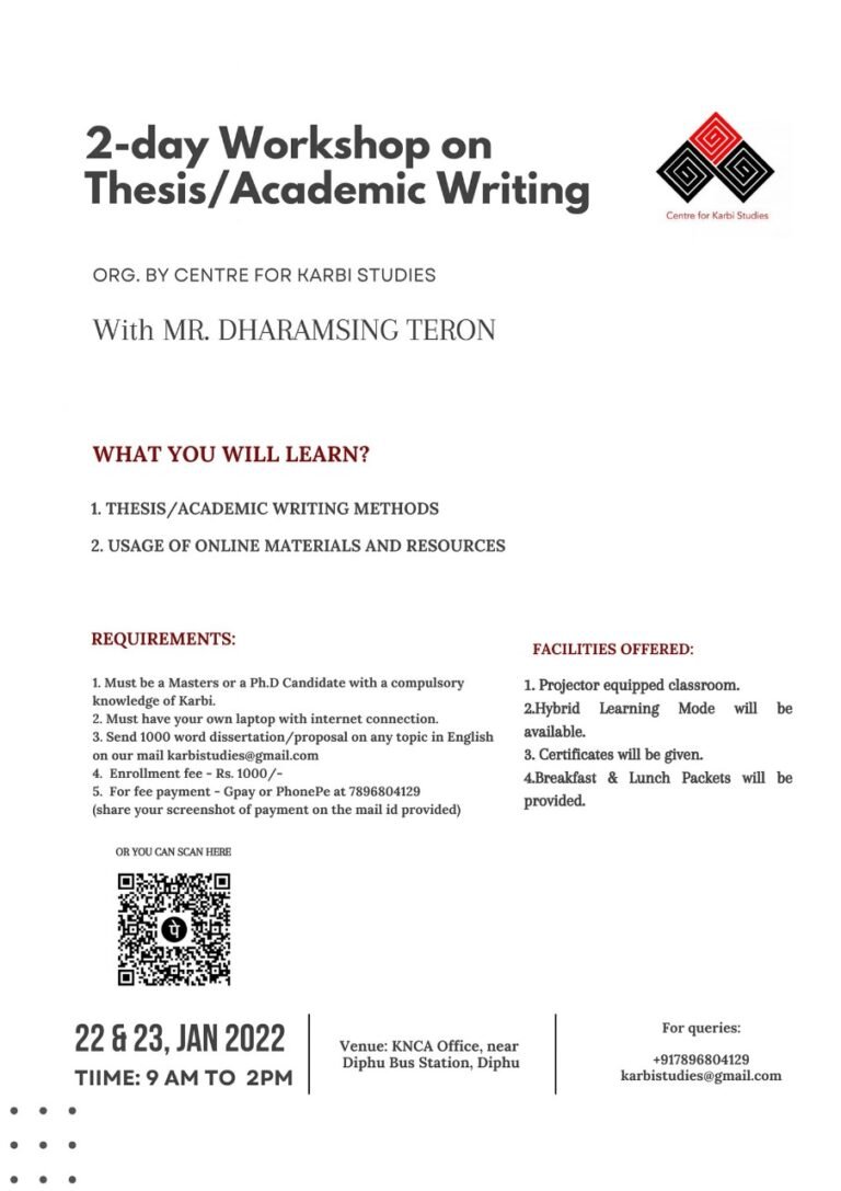 Workshop on Thesis/Academic Writing An interactive workshop aimed at improving academic writing skills for Karbi studies.